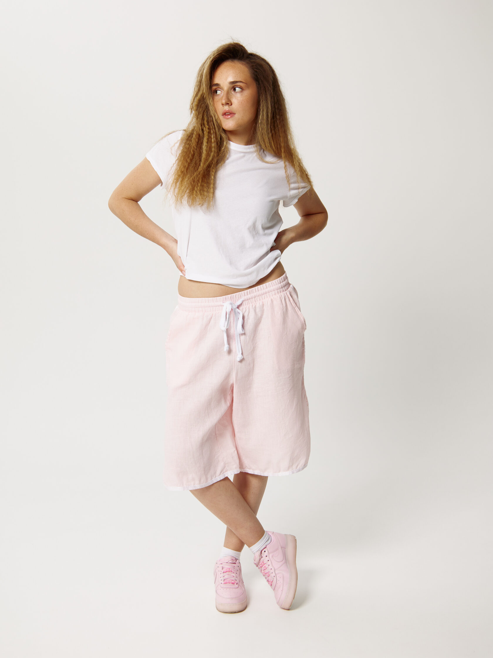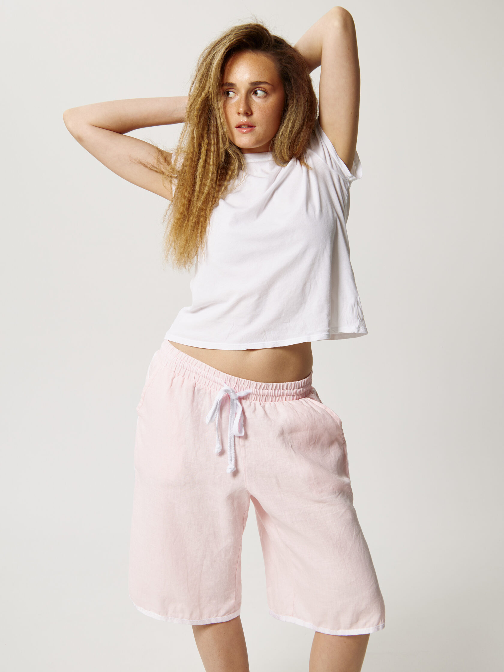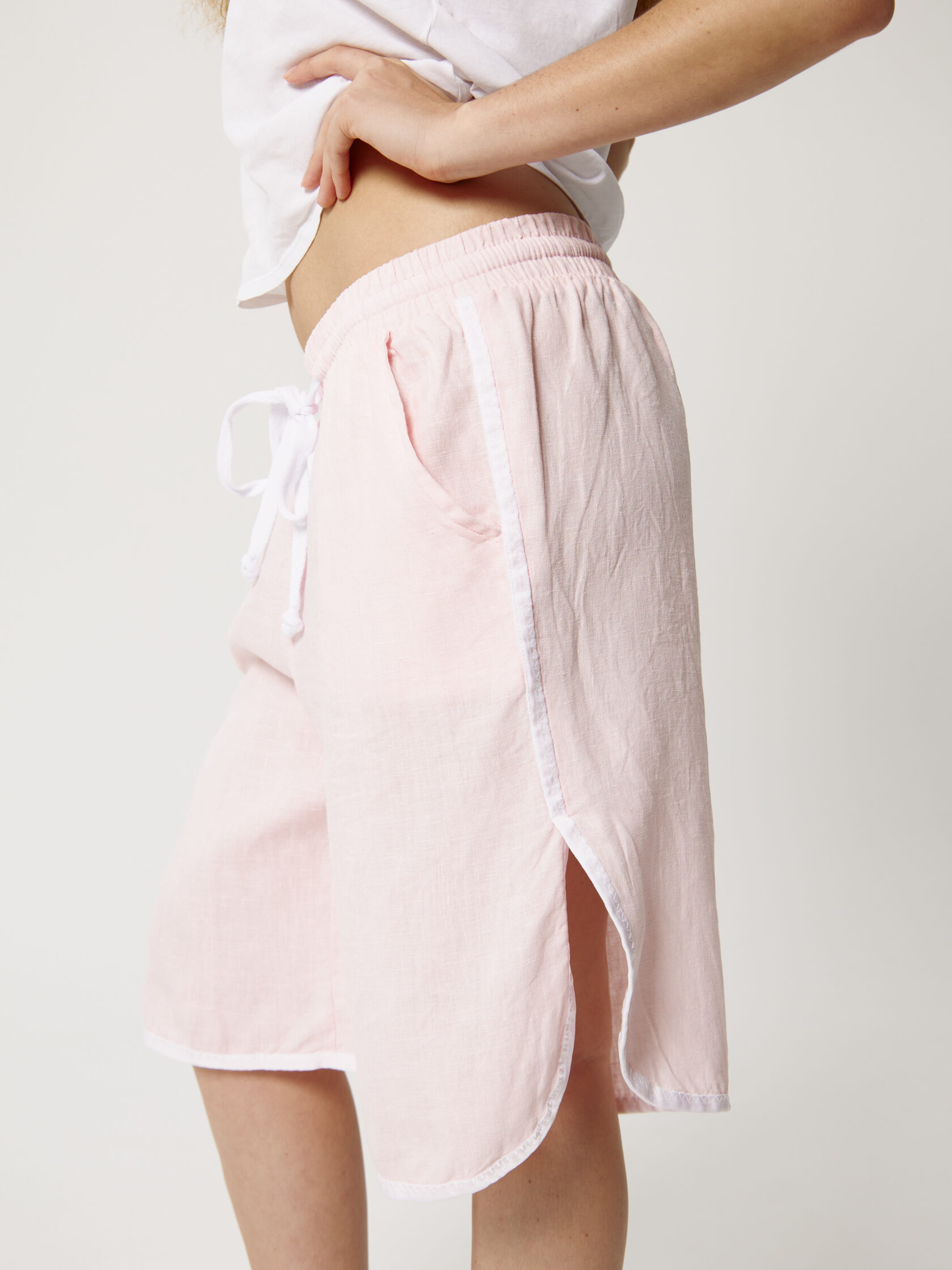 Розовые баскетбольные ретро шорты с белой окантовкой из 100% льна