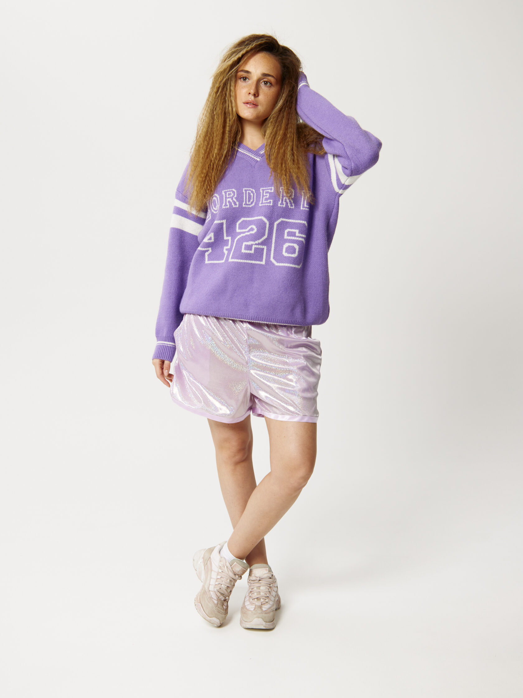 Лиловые ретро шорты с лиловой окантовкой, 100% п/э