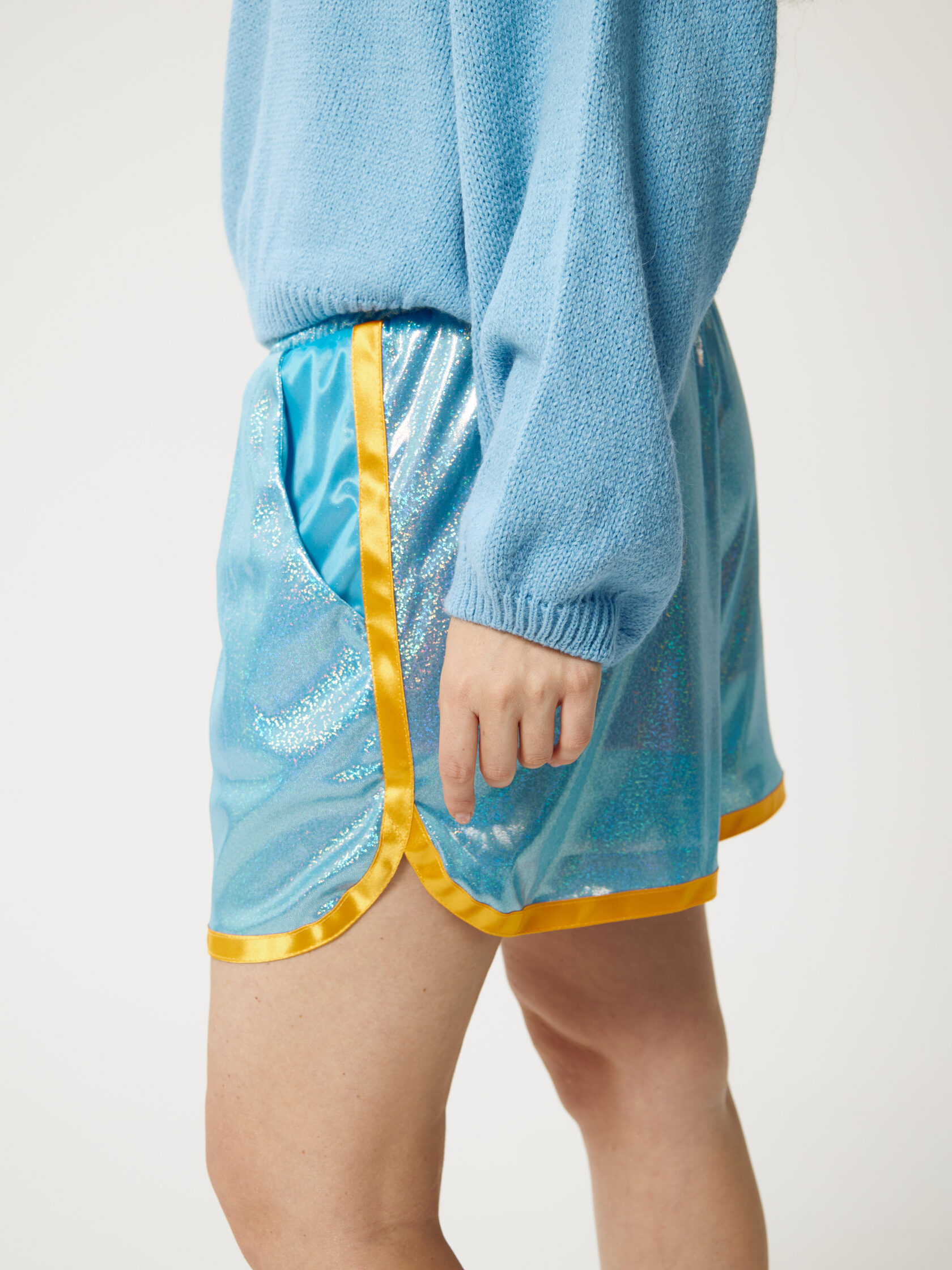 Золотые ретро шорты с голубой окантовкой, 100% п/э